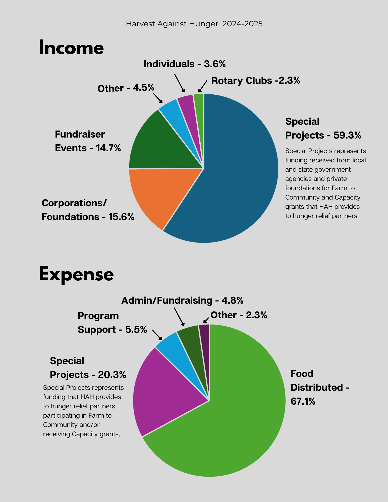 Because of you — our dedicated board, tireless staff, steadfast hunger relief partners, and the 600+ compassionate individuals, corporations, foundations, tribes and Rotary clubs who stood with us in fiscal year 2025 — people in need are finding nourishment, dignity and hope. Your generosity is feeding neighbors today and building a hunger relief system strong enough to sustain generations to come.
